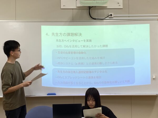 本プロジェクトは、AIを活用して地域に貢献できる即戦力人材の育成を目的とした教育プログラムの一環として実施されました。DifyやGoogle Apps Scriptなどを活用しながら、単なるIT教育ではなく、課題解決型・実践型のアプローチを重視しています。特に、今回の取り組みでは、若者が自ら問題を発見し、地域のために技術を活かそうとする主体的な姿勢が随所に見られ、今後の地域DX推進や人材育成にとって大きな可能性を感じさせる結果となりました。今後、学校教育におけるDX推進や先生方の業務改善の取り組みにも応用できるプログラムです。導入をご検討の際はお気軽にご相談ください。